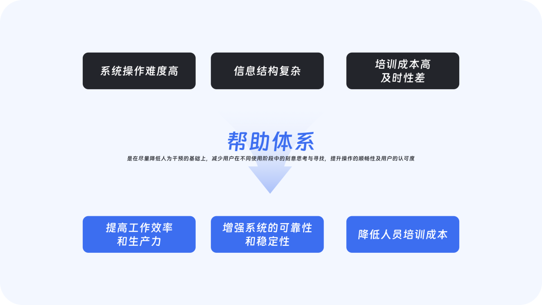 “帮助体系的出发点是在尽量降低人为干预的基础上,减少用户在不同使用阶段中的刻意思考与寻找,提升操作的顺畅性及用户的认可度。”