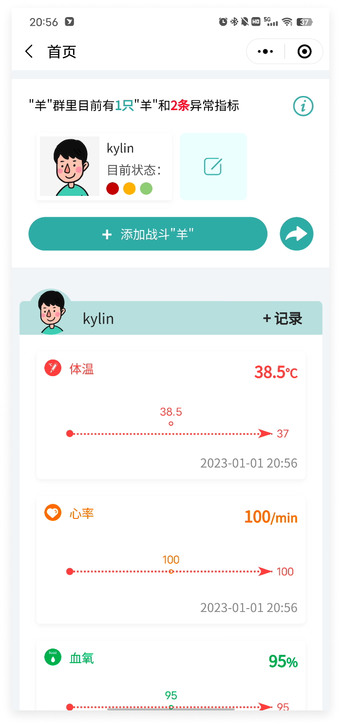 用来记录自己和家人的体温、心率、血氧等新冠症状,对超过健康范围的症状数据进行异常提醒,便于监测和回顾。
