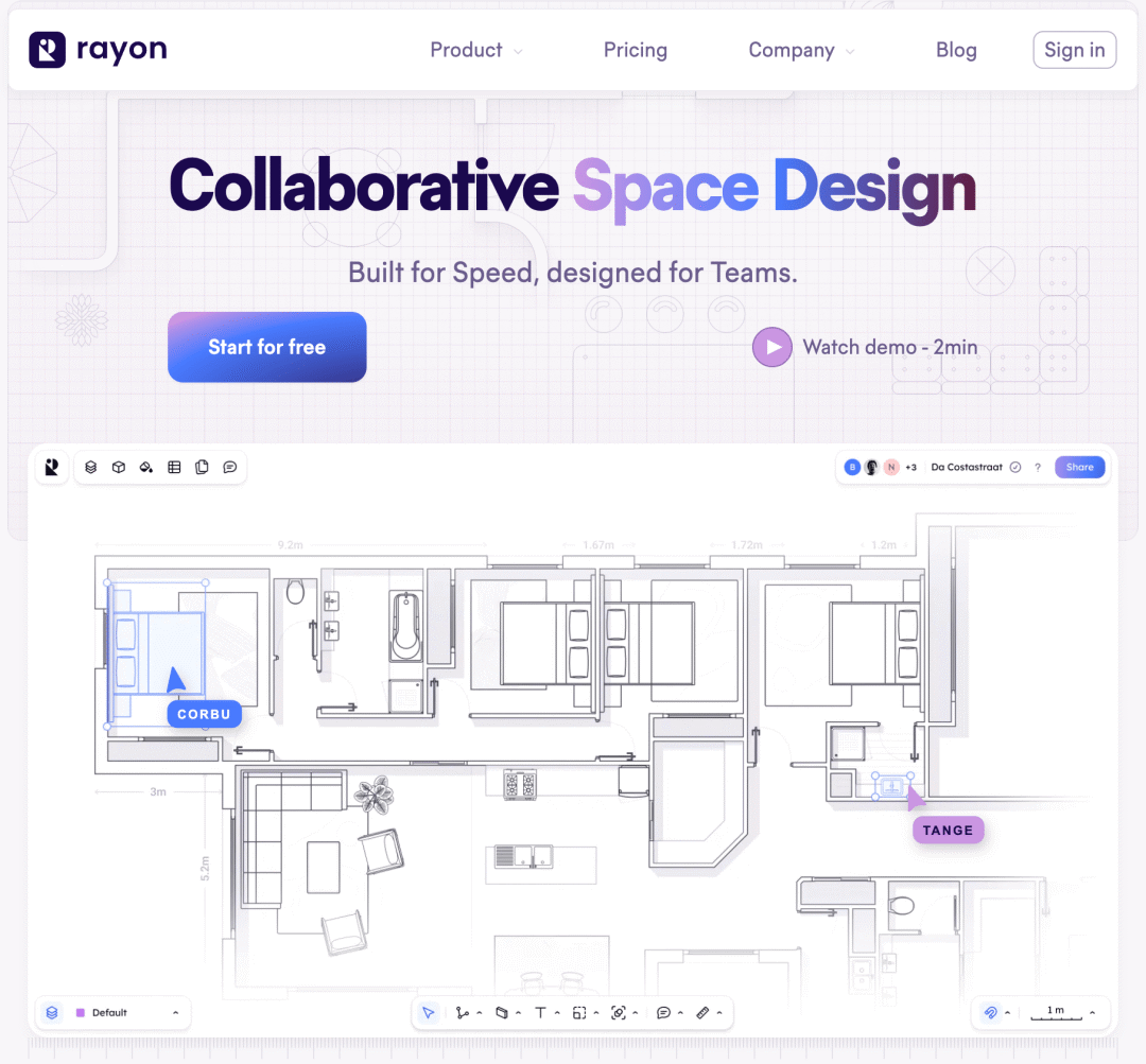 相当于室内设计版的 Figma,多人网页内协作室内设计。