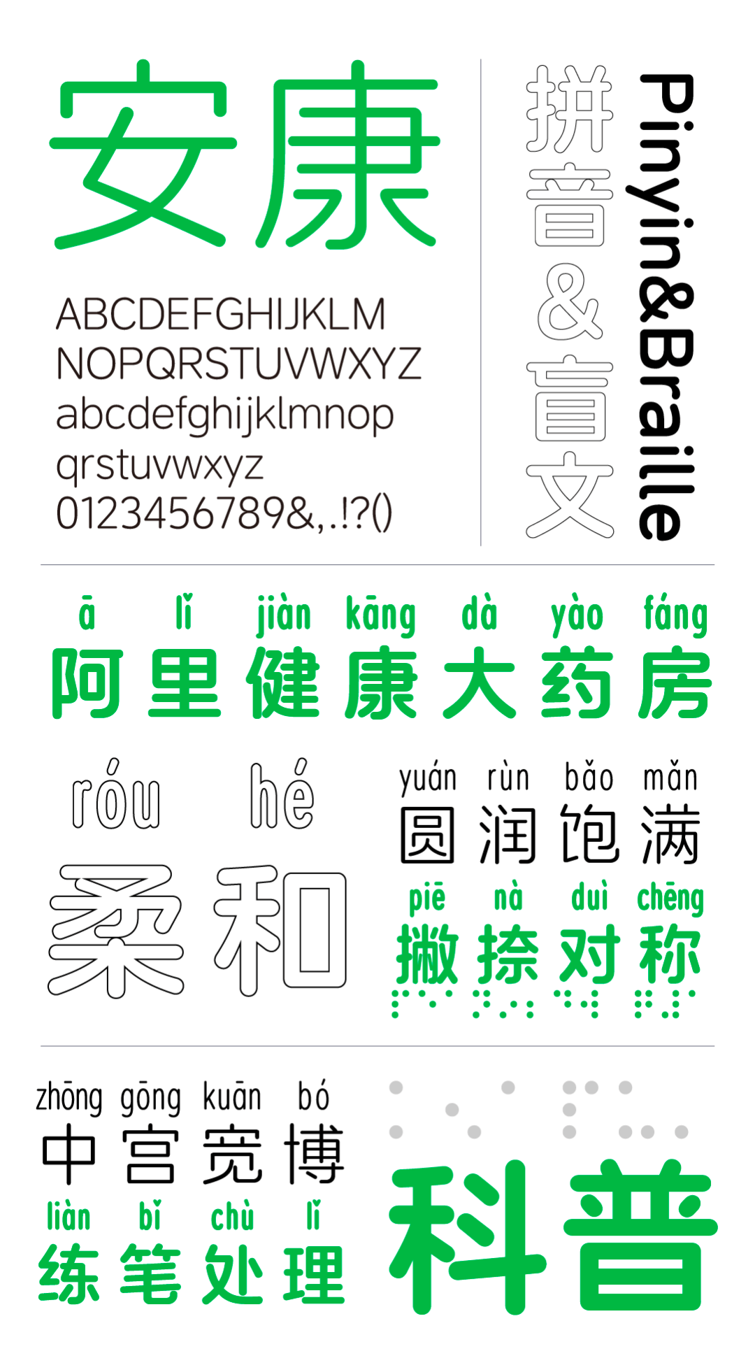 方正字库与阿里健康团队再度携手,推出阿里健康体迭代版本——阿里健康体 2.0。为了鼓励更多人关注无障碍设计,进一步推进医疗健康服务的普惠可及,阿里健康体 2.0面向全社会永久免费开放使用。