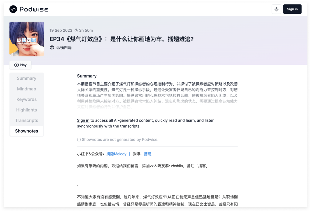 Podwise 会通过 AI 对播客内容进行 转录、提取、总结、分析 等一系列操作,帮你掰开了揉碎了硬核的播客知识。同时与 Notion、Readwise 等平台的打通,嵌入你的知识管理工作流。