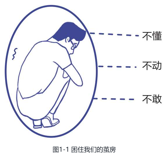 《把自己变成稀缺资产》里有一张图,叫困住我们的茧房,里面有三个词:不懂、不动、不敢。